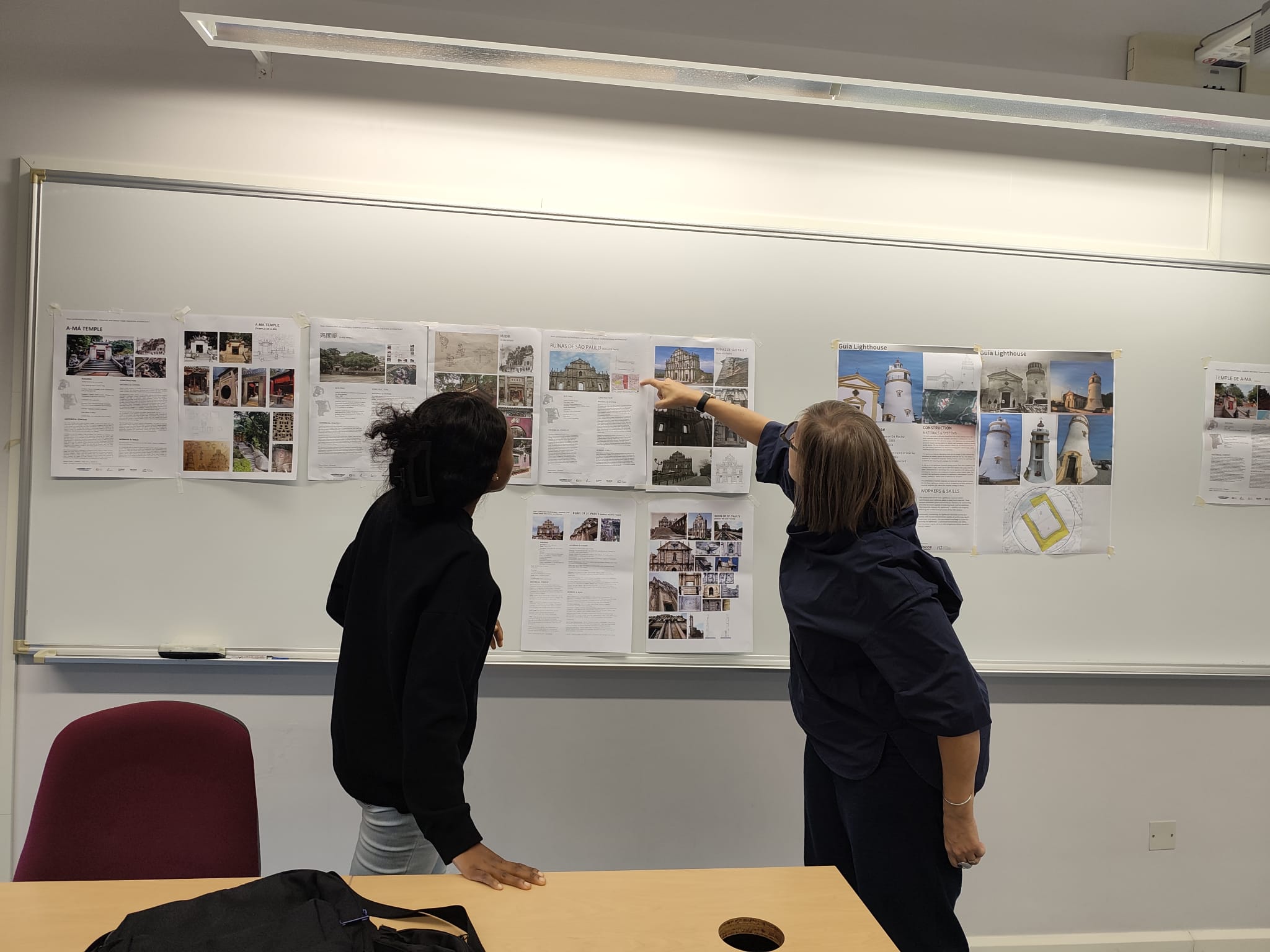 The focus of the undergraduate module assessment work, “How did built technologies and materials make architecture?”, was on the construction techniques and workers of Macau’s old buildings. Topics were chosen from a variety of architectural programs, ranging from religious architecture (churches or temples), domestic architecture (Chinese houses), military architecture (fortresses), or other facilities. Starting from the “Macau Cultural Heritage” website, students produced a poster presentation and entered a photography competition.